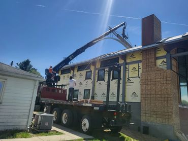 Our boom truck is capable of booming construction materials up to 70 feet (4 floors) and through window openings! We do truss setting, shingle and roofing material placement, moving/setting sheet rock and delivering materials to areas with limited accessibility. We have the equipment and the skilled drivers to meet your needs!